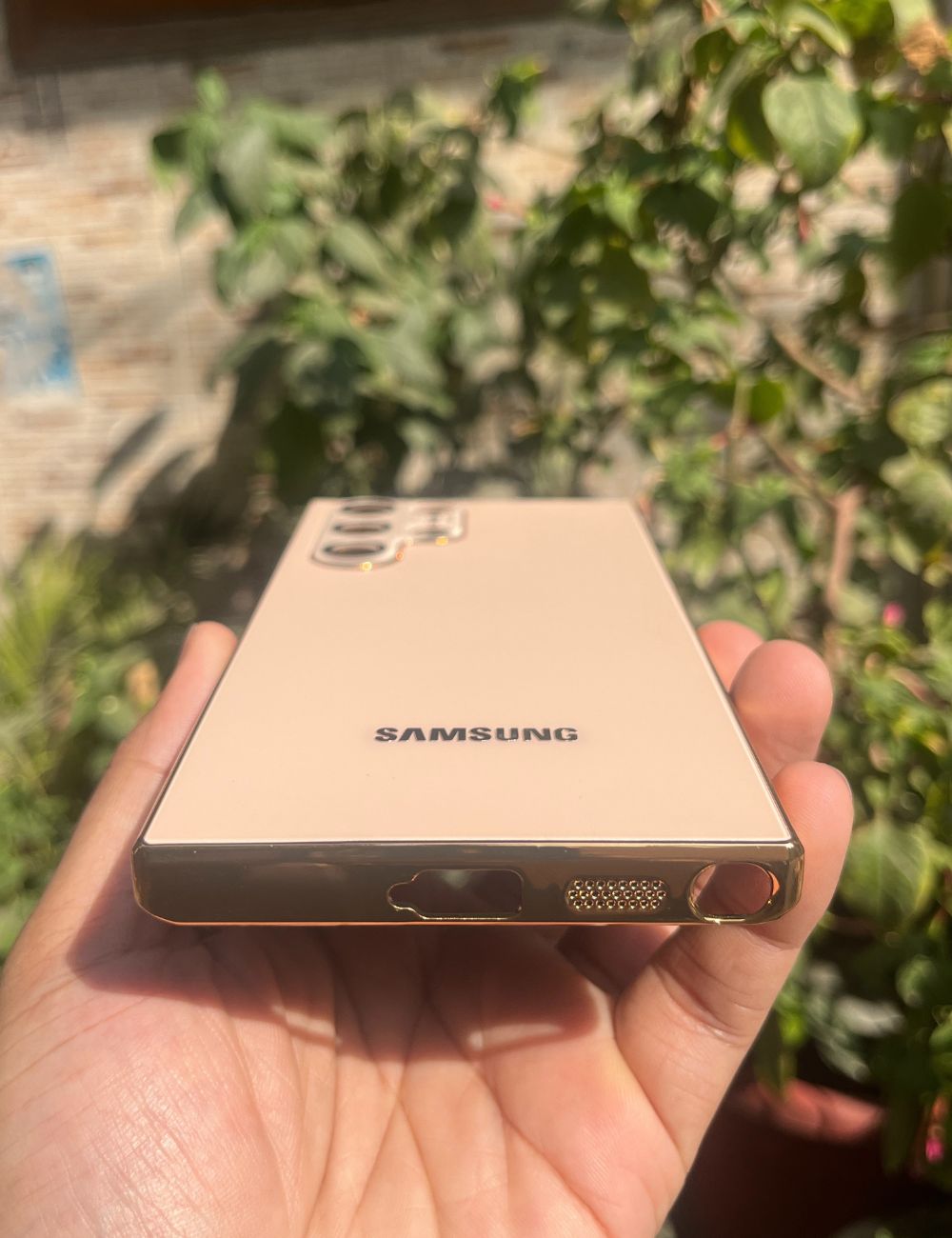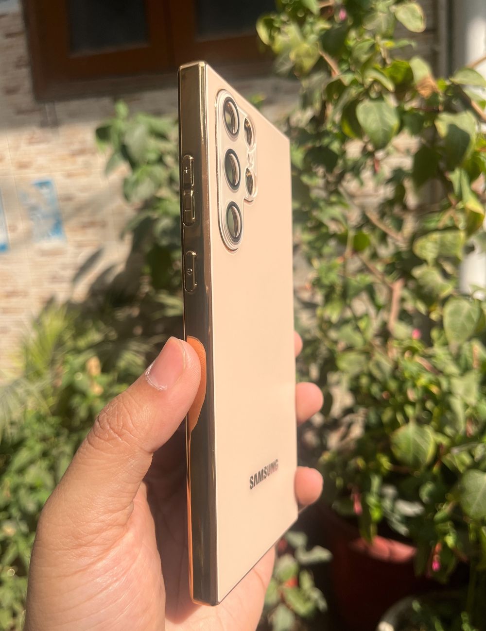 Golden Electroplated Chrome Glass Lense Case For Samsung Galaxy S24 Ultra